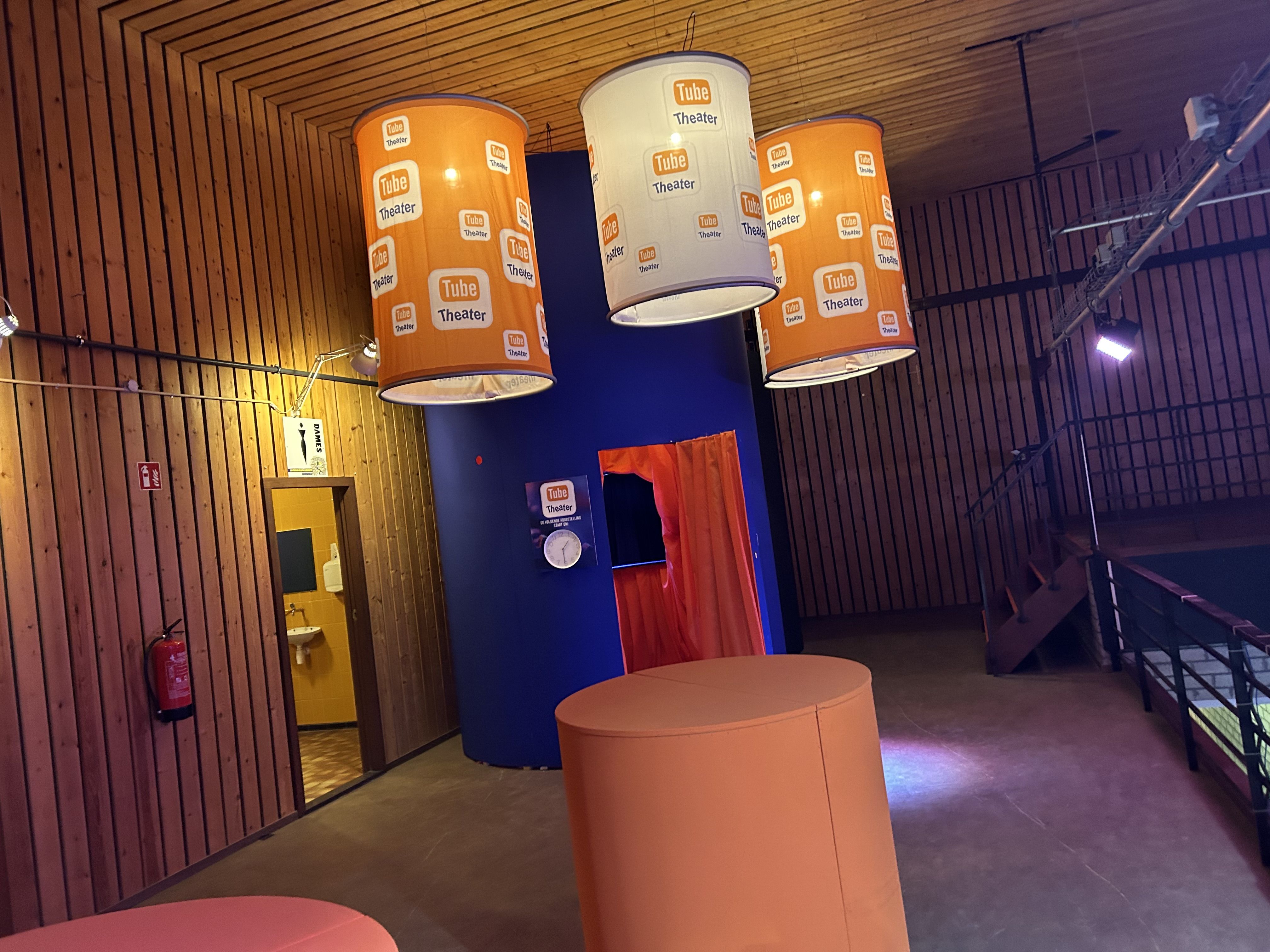 Nieuw! Ons kleine ronde minitheater Tube. De voorstellingen duren slechts 5-10 minuten, dus spring even binnen en laat je verrassen. Check het bordje bij de ingang voor de volgende starttijd. En kom ’s avonds nog een keer terug want dan is er weer een nieuwe voorstelling.